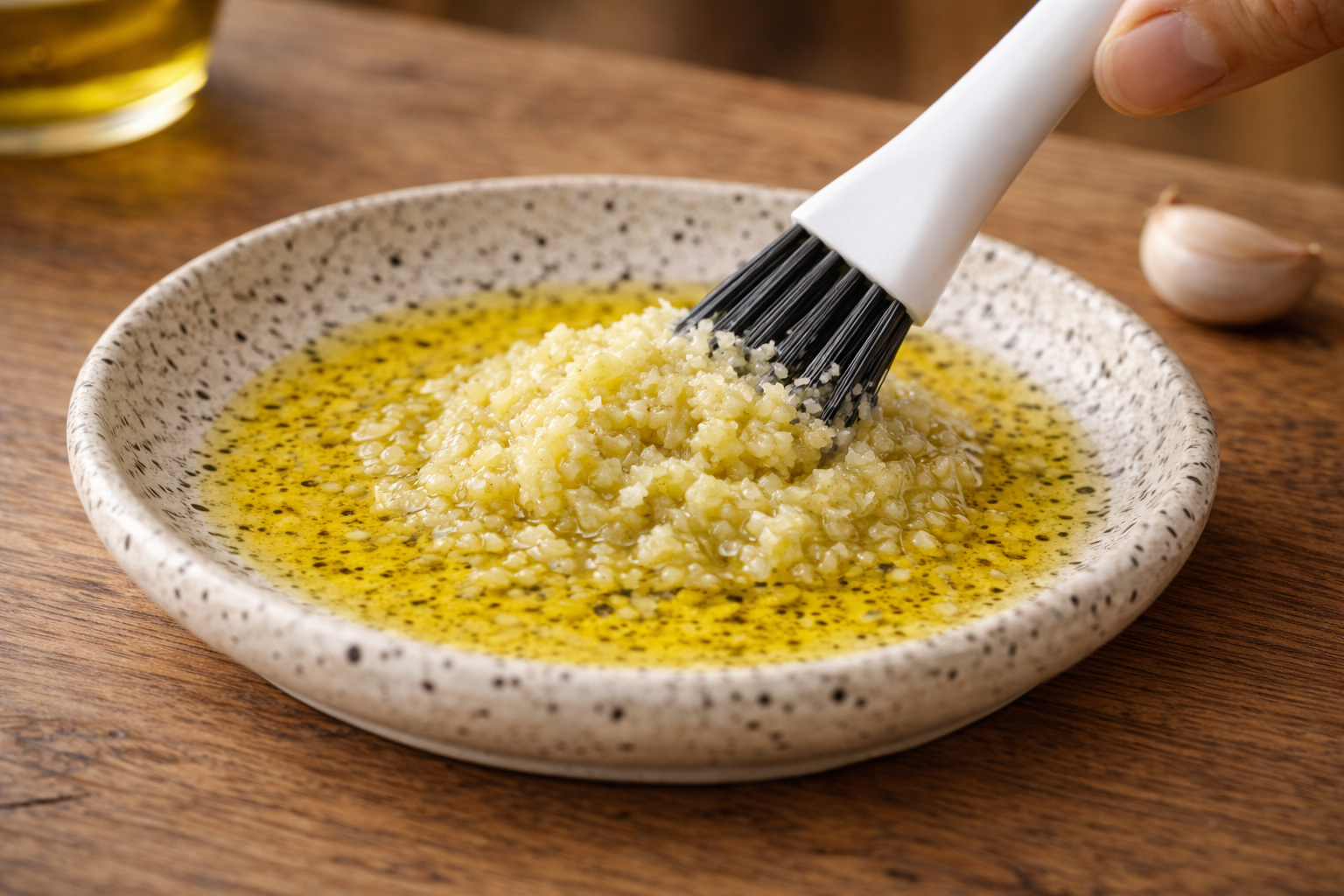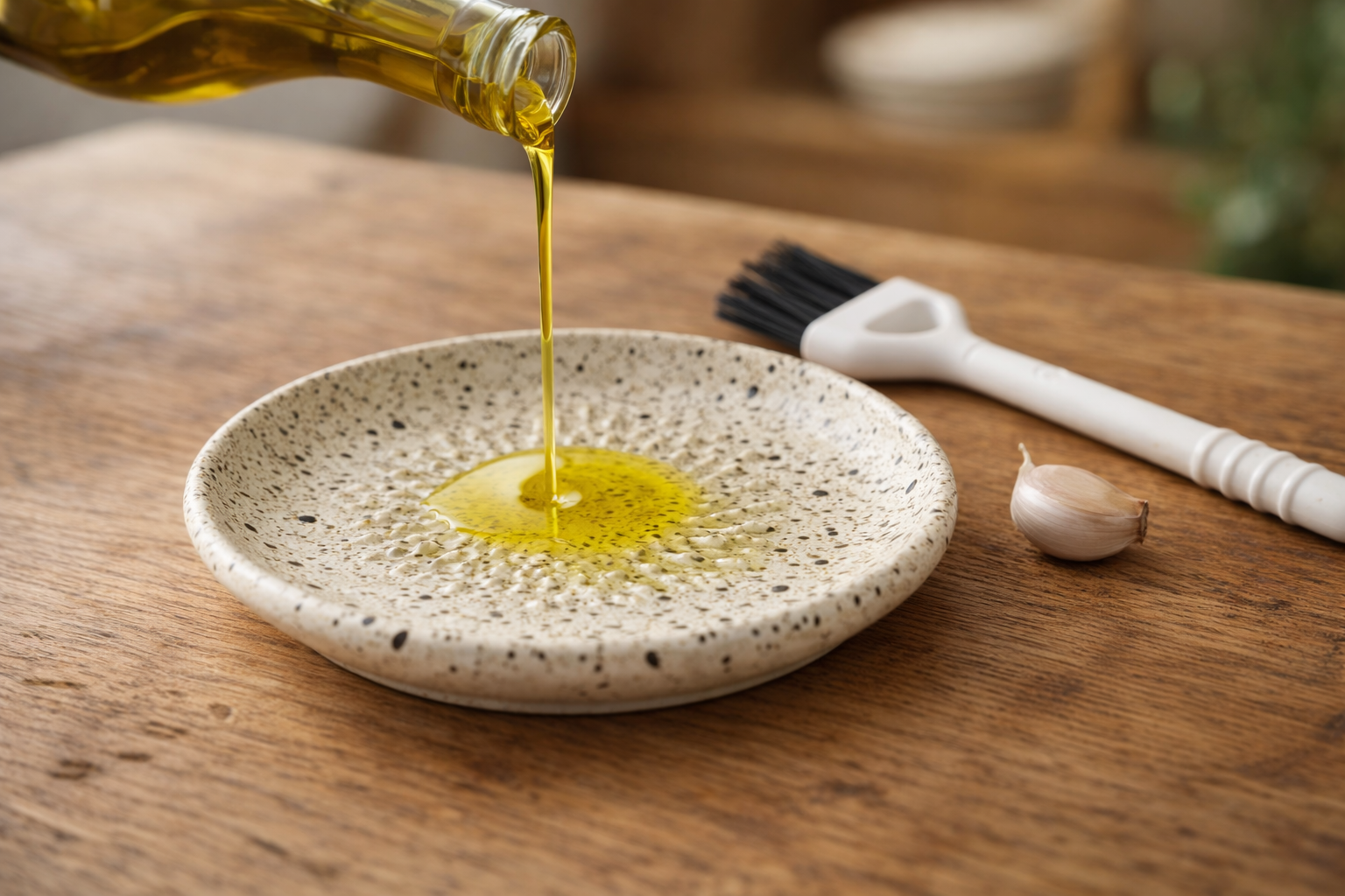 Etwas Olivenöl in die Mulde der Keramikreibe geben.